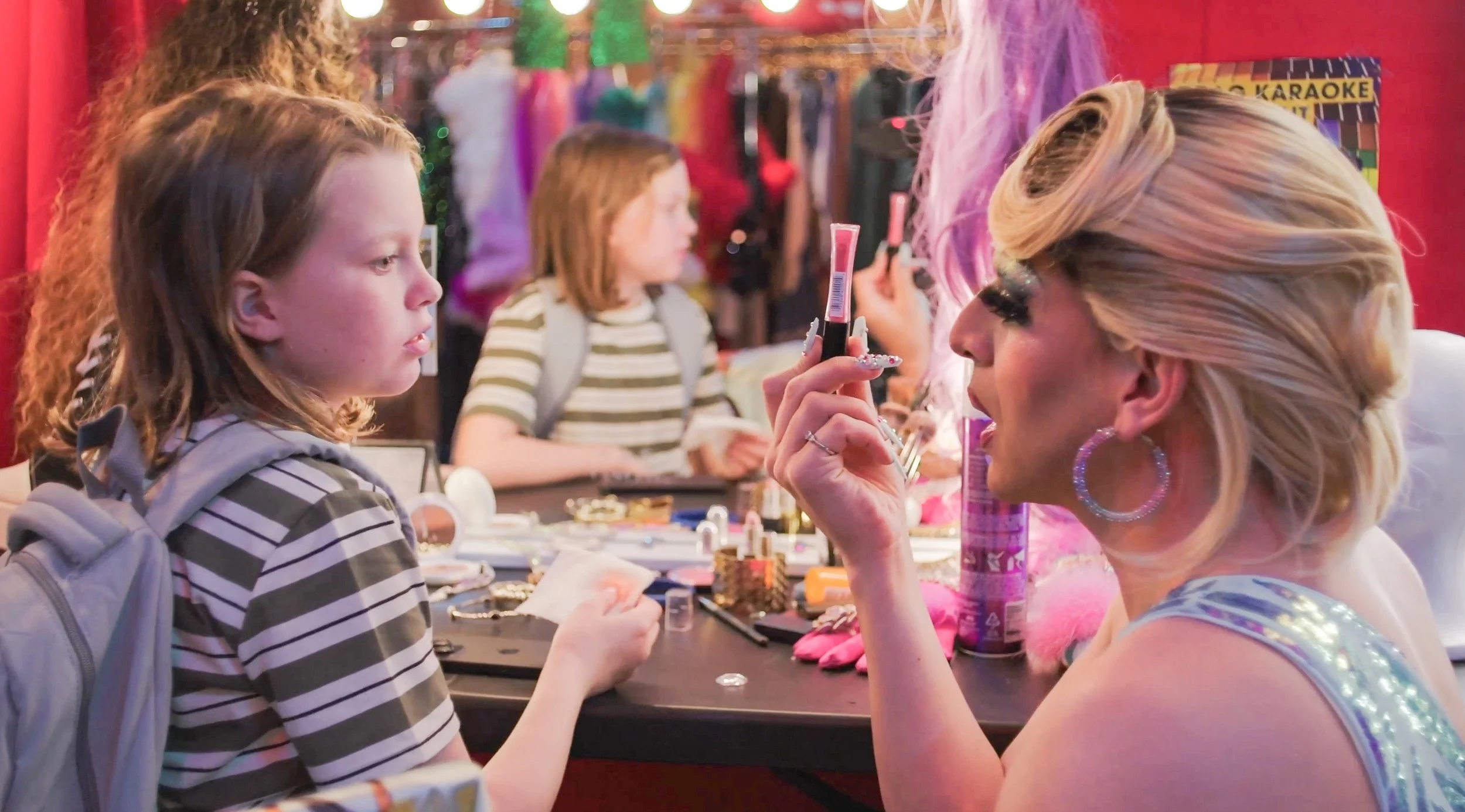 A 2020 study found that “82% of transgender individuals have considered killing themselves and 40% have attempted suicide, with suicidality highest among transgender youth.” Built around ripped-from-the-headlines culture war issues—trans bathroom use, drag queens around kids, conversion therapy—Fia Perera’s new film, Mermaid, sensitively explores one child and one family’s story through 10-year-old Cassie (Devyn McDowell, Annette, The Good Nurse) as she contemplates a similar fate, only to be brought into the orbit of struggling drag queen, Pepper.